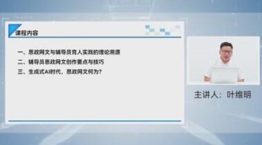 本课程聚焦辅导员思政网文创作,融合理论与实践,探索多维创新路径。课程从思政网文与辅导员育人实践的理论溯源出发,解析基本概念与历史沿革;提炼写好思政网文的3个关键词、取标题的6种方法及内容构思的3种创新路径,夯实创作基础;直面生成式AI时代挑战,阐述5大思维跃迁与5个技术创新路径,传授消除思政网文“AI味”的5个实用技巧,助力辅导员提升思政网文创作能力,实现技术融合与育人实效的双重突破。