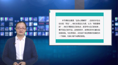《自负心理辅导(中学)》是班主任心理辅导系列微课之一。自负的学生总是自以为是、唯我独尊,认为“我是最棒的,我能做好一切事情”,他们只看到自己的优点,甚至夸大自己的优势,看不到自己的不足。和自卑相比,自负是学生自我意识发展的另一个极端,也是心智不成熟的表现。本课程致力于帮助班主任引导学生辨别自信和自负的差异,形成客观公正的自我评价,学会欣赏他人、悦纳自我,强化理性平和的健康心态。