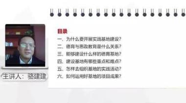 2017年,中共教育部党组印发《高校思想政治工作质量提升工程实施纲要》。文件中提出,要“培育建设一批实践育人与创新创业示范基地”。在本课程中,主讲人结合德育基地建设的探索与实践,首先分析了德育基地建设的背景和原因;其次论述了德育与思想建设的关系;接着给出了五项建设原则;然后以常州德育实践基地建设实践为例,从基地类型和时间维度两方面分析总结了基地建设的重点与难点;在此基础上,重点从谁来教、教什么和怎样教这三个核心,回答了如何组织基地活动的问题;最后就如何运用好基地项目成果,给出三点建议。