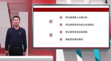 本课程依据课程思政整体要求,结合劳动课程标准具体内容,根据教学实际情况,阐述劳动课程独特的育人价值,分析劳动课程与课程思政相关的具体内容与实施建议,探讨劳动课程思政实施的有效策略,展示劳动课程思政的优秀教学案例。