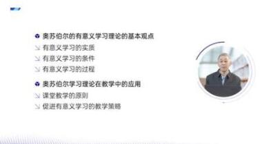 本课程以名师的真实教学案例作为导入,阐述当代认知学派学习理论的主要观点及其在教学中的应用。主要内容包括认知学派的代表人物美国心理学家布鲁纳和奥苏泊尔的学习理论的基本观点及其教学应用,建构主义学习理论的基本观点及其教学应用。