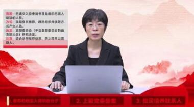 规范做好发展党员工作,是贯彻落实新时代党的建设总要求,是坚持和加强党对高校的全面领导,扎根中国大地办好中国特色社会主义大学的根本保证,也是高质量党建引领高质量发展、实现教育强国的战略工程。本课程中,主讲人基于《中国共产党发展党员工作细则》《中国共产党普通高等学校基层组织工作条例》等,讲解了入党积极分子的确定和培养教育的流程要求,提出了发展过程即是培养过程,强调了要以高度的政治责任感做好发展党员工作。