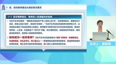 为深入学习贯彻习近平总书记关于教育的重要论述和重要指示批示精神,进一步深化新时代廉洁文化建设,加强高校师德师风建设,强化教师师德培养,引领教师专业发展,大力弘扬教育家精神,更好地践行教师“为党育人、为国育才”的初心使命。本课程中,主讲人以“弘扬廉洁从教精神,做师德师风典范”为主题,从习近平总书记的教书育人观为着眼点,进一步阐述新时代高校教师廉洁从教的重要意义,通过深入分析高校教师队伍廉洁建设存在的问题及教师从教不廉现象产生的原因,为高校教师提升廉洁从教意识提出方向指引。以此帮助教师认识、理解廉洁从教的重要意义,引导教师做师德师风典范,为树立“躬耕教坛、强国有我”的志向和抱负,培养社会主义建设接班人奠定良好的道德和行为基础。