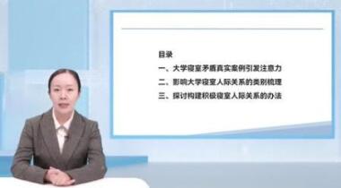 寝室作为学生学习生活的重要场域,如何建立积极的寝室人际关系,对大学生具有深远的影响。本课程主讲人以实际案例为背景,聚焦学生生活习惯和个体性格差异两个维度,剖析寝室关系在安全排查、卫生安排、时间管理、沟通交流等方面可能存在的问题隐患,并给出解决建议。