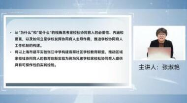本课程主要借助上海市建平实验张江中学牵头构建的翡翠社区学校教育联盟的教育创新实验,围绕家校社协同育人机制构建的理论与实践研究展开。聚焦学校、家庭和社会在落实协同育人中的重要作用,通过厘清家校社协同育人的必要性、内涵要素、发展阶段以及存在的主要问题,从而明确学校如何充分发挥协同育人主导作用,结合翡翠社区学校教育联盟家校社协同育人实践分析提炼有效策略,从而为其他学校提供借鉴。